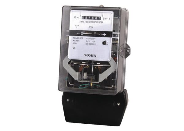 Model YEM081PD three phase four wire electromechanical front board installed active energy meter is a kind of new style three phase four wire active energy meter, it is on the basis of original three phase electromechanical meter, and fully absorb new technologies about electromechanical meter from domestic and abroad, and development long-life technology. The meter completely accord with relevant technical requirements of class 2 three phase active energy meter stipulated in international standard IEC 62053-11. It can accurate and directly measure 50Hz or 60Hz active energy consumption from three phase four wire AC electricity net, it is use for setting indoor or out door meter box, and it can display total energy consumption by drum wheel mechanical register. It has following features: high overload, power loss, long-life, specious appearance, etc.
